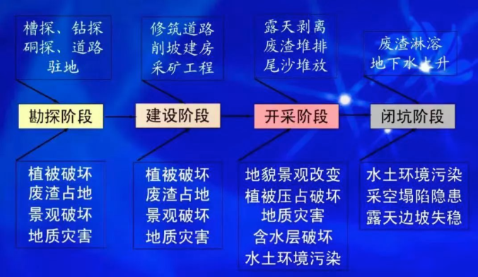 主要礦山生態(tài)問題有:水土環(huán)境污染、采空塌陷隱患、露天邊坡失穩(wěn)等。