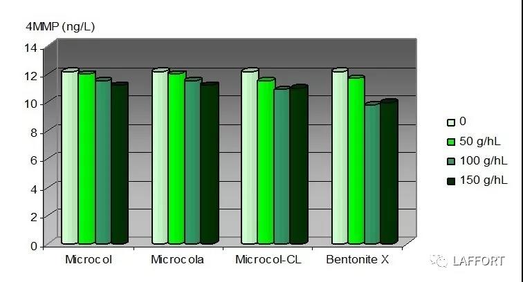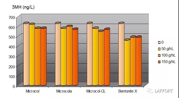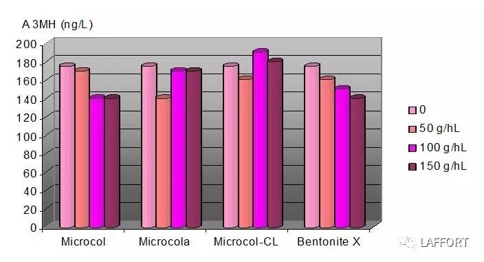 從以上三圖中,可以看出LAFFORT公司的三種膨潤土產(chǎn)品Microcol-P, Microcol-CLG和 Microcol -ALPHA 對葡萄酒芳香特征的影響都是非常小的。
