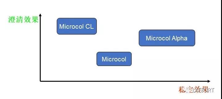 注:圖例中的 Microcol = Microcol-P, Microcola = Microcol-ALPHA,Microcol CL = Microcol-CLG